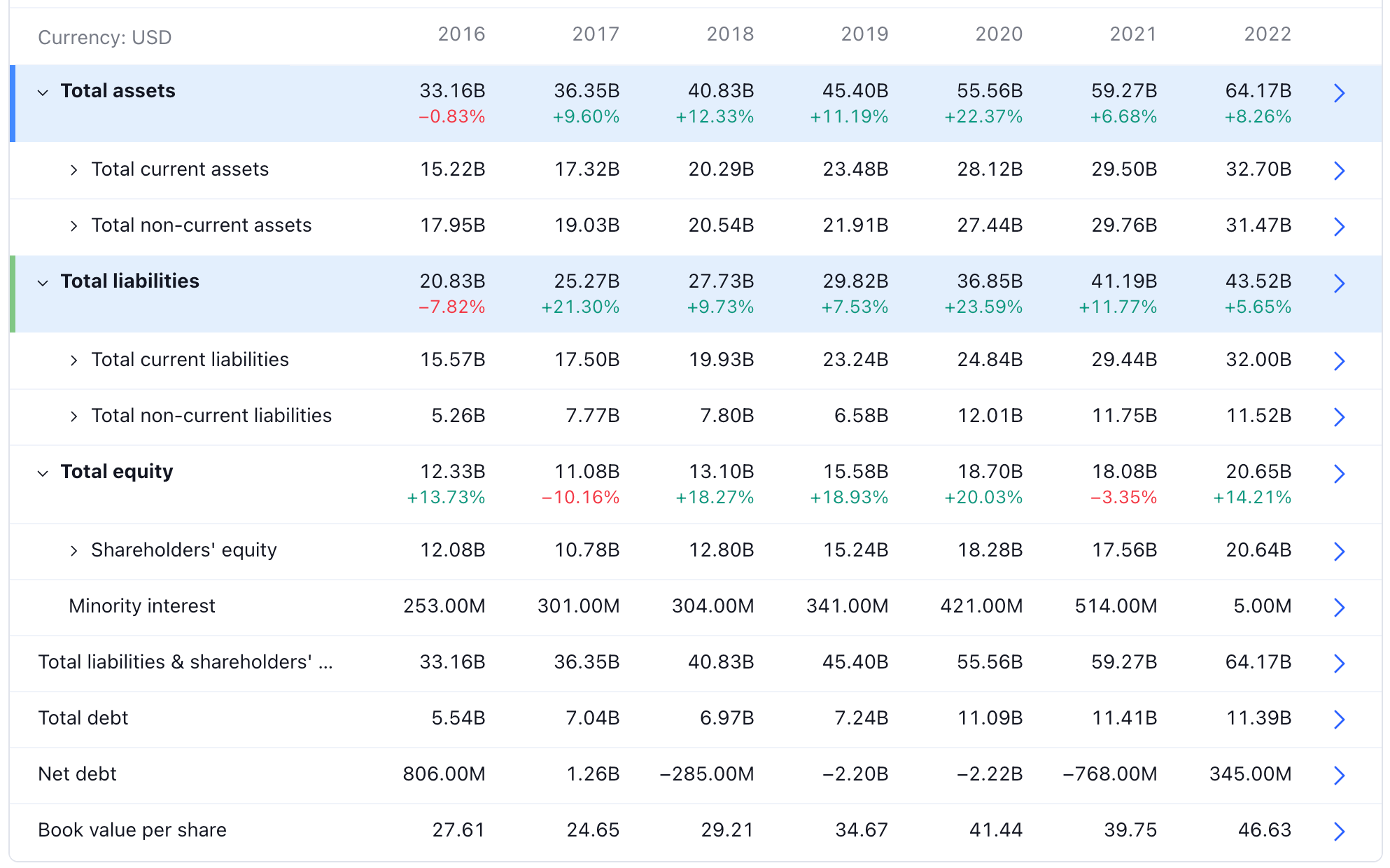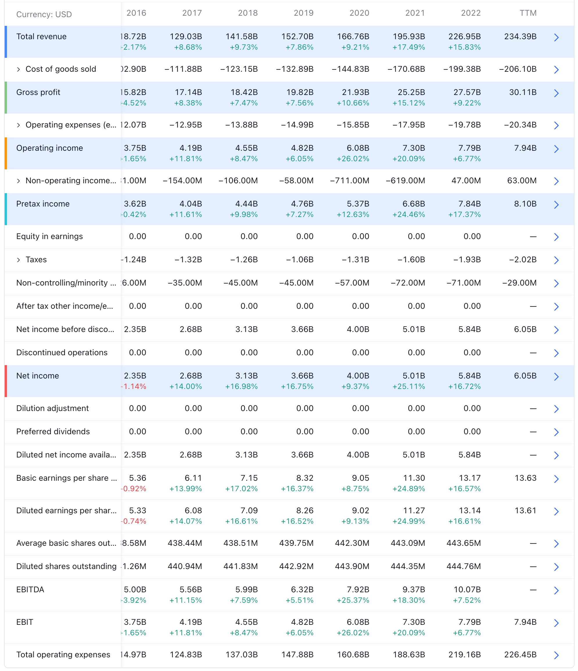 - Net income increased 17% to $5.84B, or $13.14 per diluted share compared to $5.00B, or $11.27 per diluted share in 2021