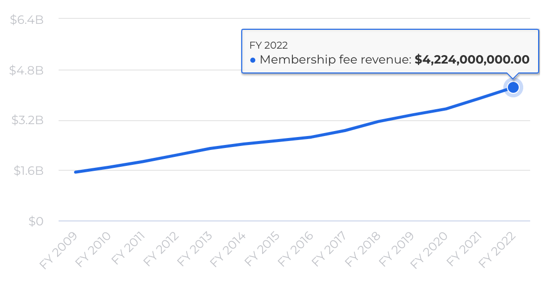 - Membership fee revenue increased 9% to $4.22B, driven by new member sign-ups, upgrades to Executive membership, and an increase in our renewal rate