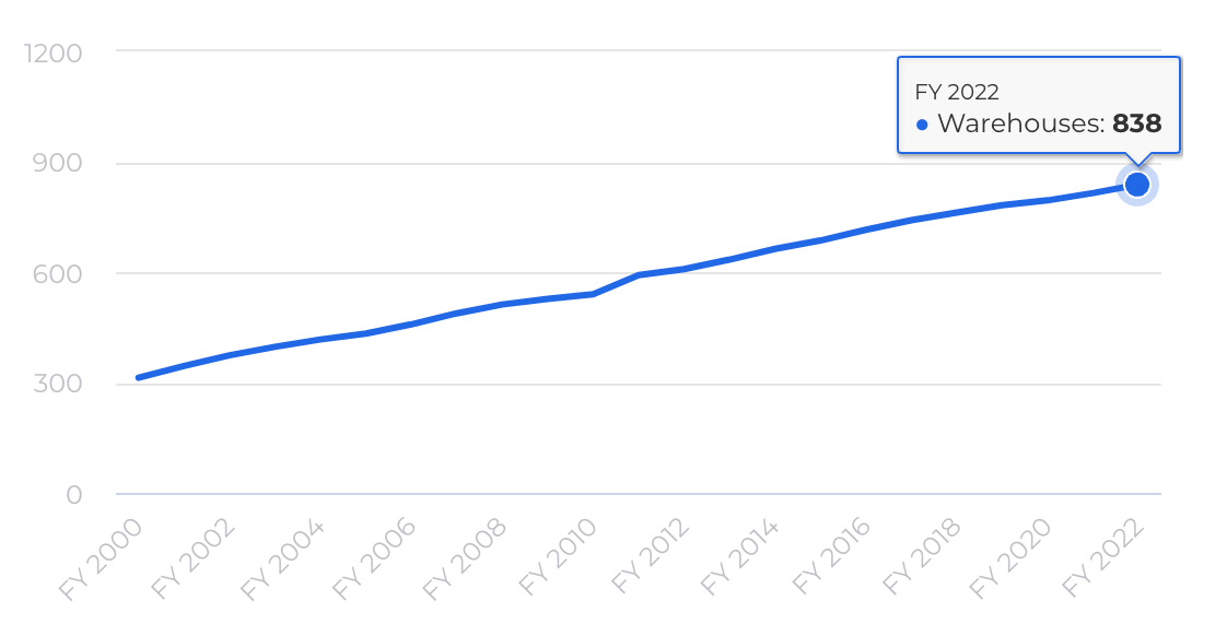- We opened 26 new warehouses, including 3 relocations: 14 net new in the U.S., 2 net new in our Canadian segment, and 7 new in our Other International segment, compared to 22 new warehouses, including 2 relocations in 2021
