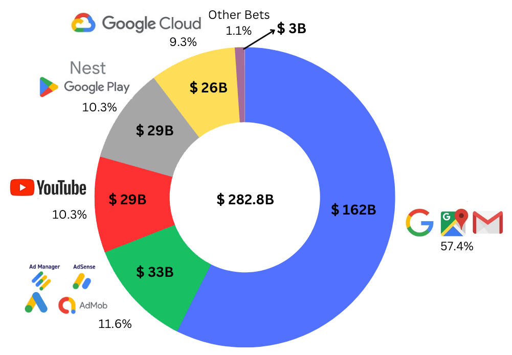 Google Ads and AdSense: Network effects drive growth in Google's advertising business by attracting more advertisers and publishers to its platforms. As more businesses advertise on Google, the platform becomes more valuable for publishers, who in turn generate more ad inventory and attract even more advertisers.