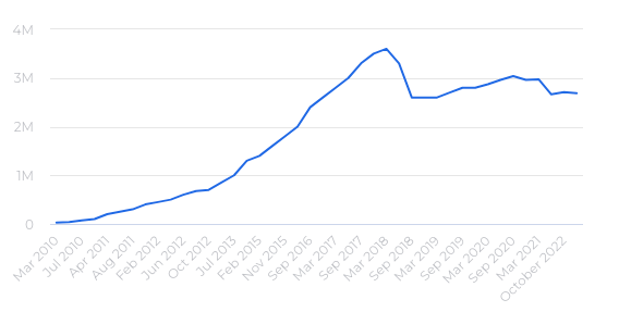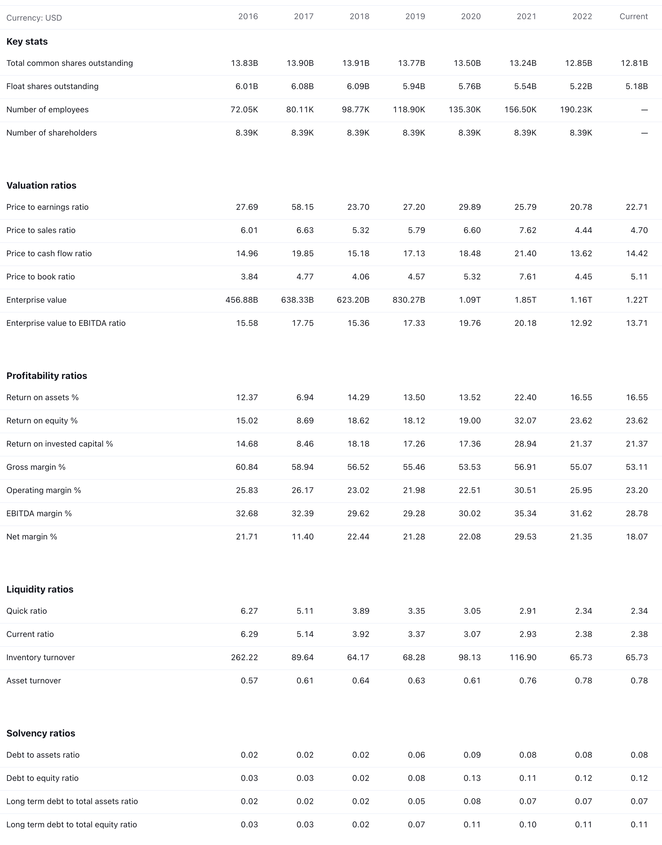 In 2022, Google generated total revenue of $228.2 billion, with advertising contributing $224.5 billion (80%) to that figure. Although Google's size is already substantial, there remains significant potential for growth. The global digital advertising market has experienced rapid expansion, doubling from $243 billion in 2017 to $568 billion in 2021, as reported by Statista. It's expected to reach $910B in 2027. These figures are much bigger than Alphabet's advertising revenue, and given the widespread presence of Google's products, each with over one billion monthly active users, the company should be well-positioned to secure a substantial portion of the market in the future.