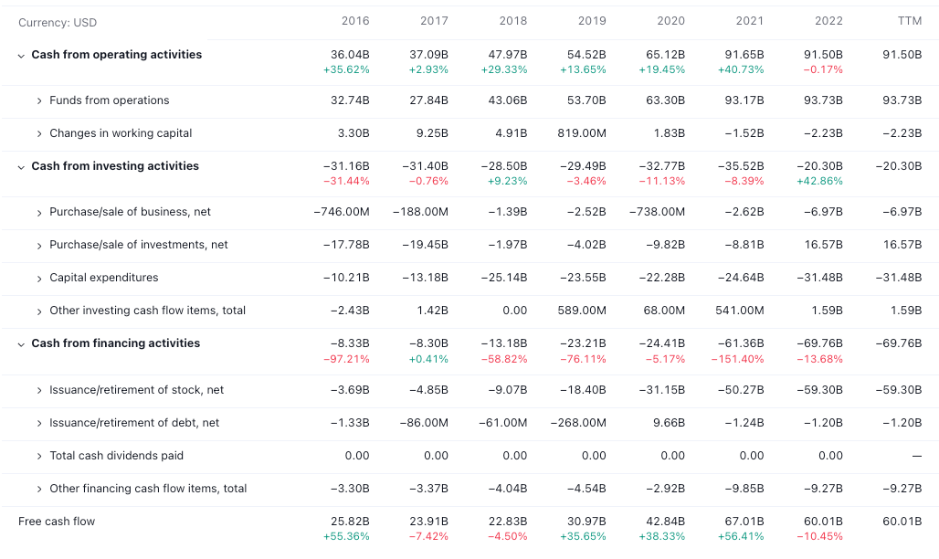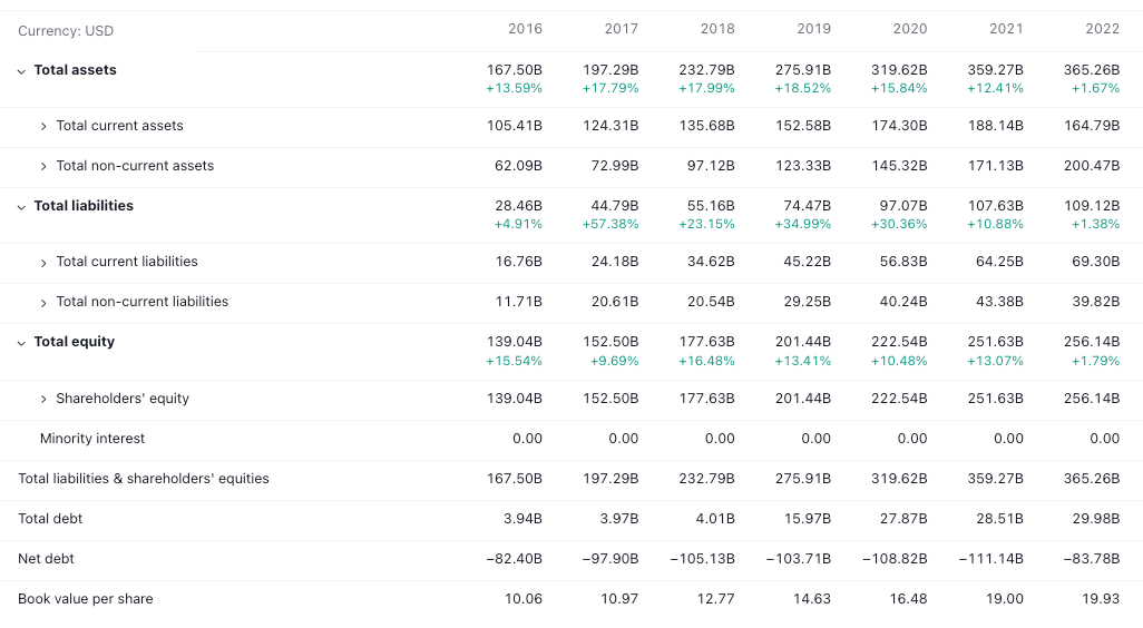 Alphabet, also known as Google, is a wonderful long-term investment because it has a strong competitive position in the online advertising market, a history of innovation, and a healthy balance sheet. Alphabet's competitive position is based on its dominance in the search engine market. The search engine, Google, is the default search engine on most devices, and it has a very large and loyal user base. This gives Google a significant advantage in the online advertising market, as advertisers are willing to pay a premium to reach Google's users. Over the years, Alphabet has diversified its business operations and now has a presence in multiple sectors, including cloud computing, digital advertising, artificial intelligence, and consumer electronics. Its subsidiaries include YouTube, Waymo, and Verily, among others. Google developed the Android operating system, which is used on billions of devices around the world. Google also developed the Chrome web browser, which is the most popular web browser in the world. Google is in strong financial position. The company has a lot of cash and no debt. This gives Google the financial flexibility to invest in new opportunities and weather any economic downturns. Google is also a well-managed and shareholder-friendly company. It has a history of returning capital to shareholders through share buybacks and dividends.
