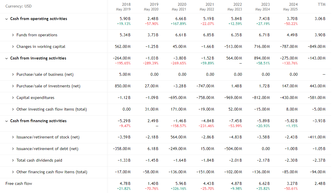 The model is not without challenges. Nike operates in a highly competitive global market that demands continuous investment in innovation and marketing, while shifting consumer preferences introduce execution and inventory risks. Its global footprint also exposes the company to macroeconomic cycles, regulatory changes, trade policy, environmental standards, and data privacy considerations. Despite these risks, Nike’s combination of brand strength, diversified categories, outsourced manufacturing, and expanding direct-to-consumer platform underpins durable cash flow generation and long-term compounding potential.